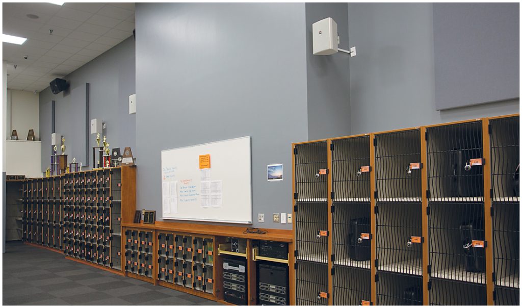 Central’s remodeled band hall encompasses 19,000 square feet and features 24’ ceilings. Along with VAE technology, the room acoustics are also enhanced by AcoustiCabinets and acoustical panels on the walls and ceiling. Ashbrook believes these products made an immediate difference on rehearsals by improving the
