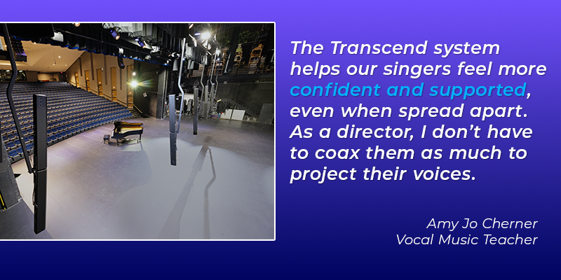 Vocal Music Teacher Amy Jo Cherner explained that Transcend allowed singers to feel supported even when spread farther apart, changing how she arranged students on risers.